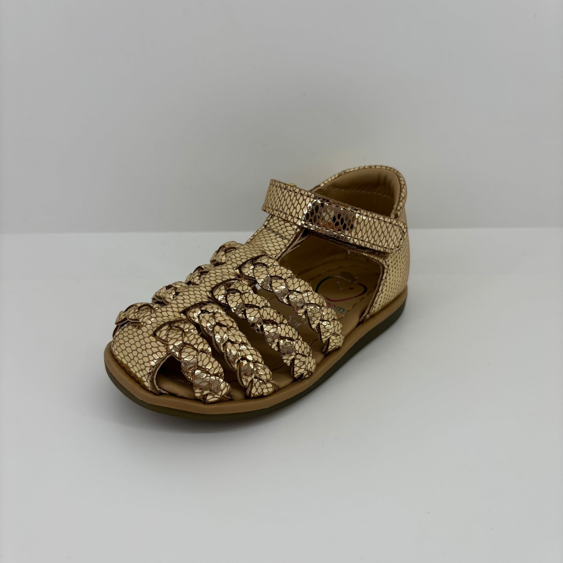 Son design raffiné et lumineux apporte une vraie touche girly aux tenues d’été, tandis que sa structure technique garantit confort et maintien pour les tout-petits. Facile à enfiler grâce à une fermeture velcro à la cheville, elle accompagne les premiers pas avec douceur et sécurité, sans compromis sur le style.